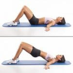- Подъём таза лёжа (мостик) (12-20 повторений)