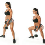 - Приседания с гантелей между ног (12-20 повторений)
